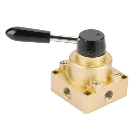 Пневматический распределитель с ручным переключением HV-02 с поворотным рычагом имеет 4 порта подвода/отвода воздуха, 3 позиции переключения, предназначен для управления пневмоцилиндрами и другими устройствами с пневматическим управлением (пневмоклапаны, пневмораспределители с пневматическим управлением и т.п.).