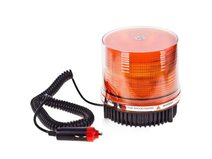 Светодиодный проблесковый маячок (мигалка). Диоды светят в режиме стробоскопа. Светодиоды работают долго, срок службы в сравнении с галогеновыми выше до 10 раз. Основой плафона является ударопрочный поликарбонат с защитой от выгорания от ультрафиолетовых лучей. Мигает очень заметно – отлично привлекает внимание в любое время суток. Оранжевые проблесковые маячки устанавливаются на спецтехнику, тракторы, комбайны, автомобили, что помогает предупреждать участников движения и даёт право отступать от требований разметки и некоторых знаков во время работ. Крепится на магнит (есть отверстия для болтов). В комплекте шнур от прикуривателя с кнопкой вкл./выкл.