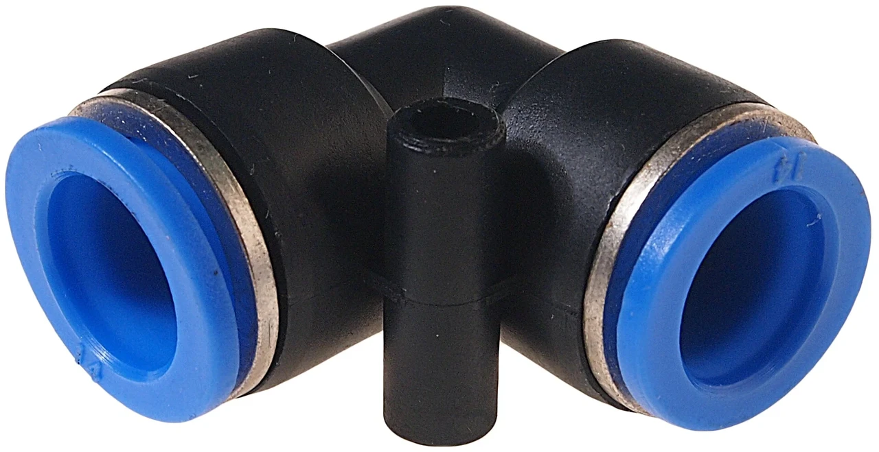 PV16 – быстросъёмный угловой фитинг для пневматических трубок наружного диаметра 16 мм. Предназначен для быстрой и герметичной коммутации воздухопроводов в пневмосистемах (соединение/отсоединение без инструментов). Применяется в промышленной автоматике, на сборочных линиях, в станках, в испытательном оборудовании и других пневматических системах.